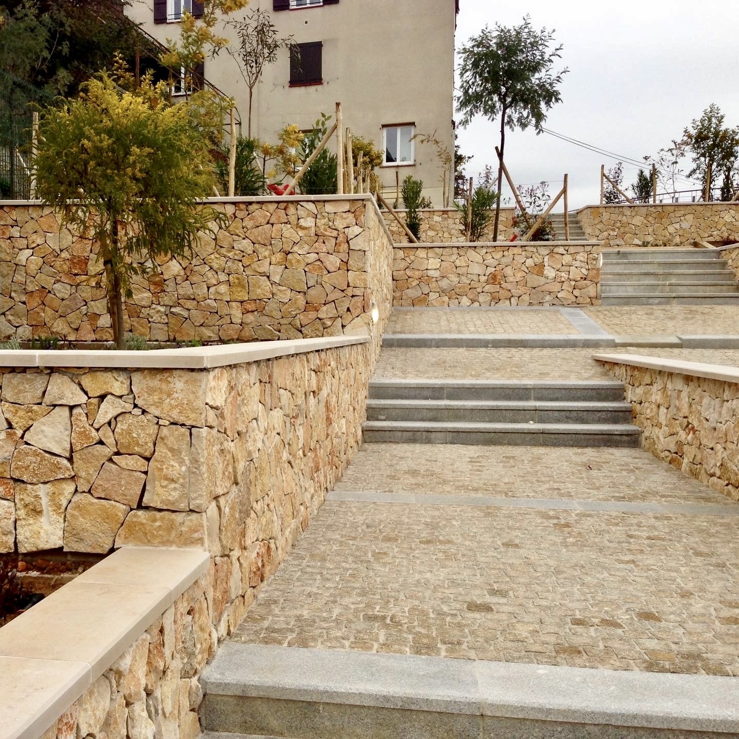 ✅ Granit jaune, choisi pour sa teinte lumineuse et sa résistance dans le temps