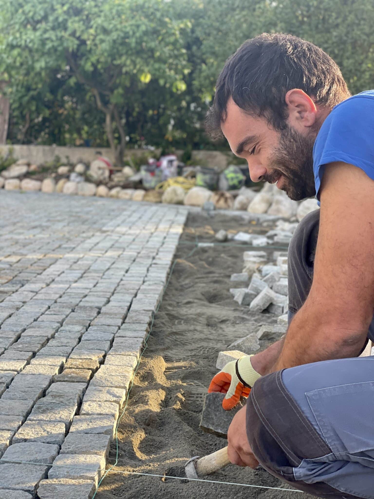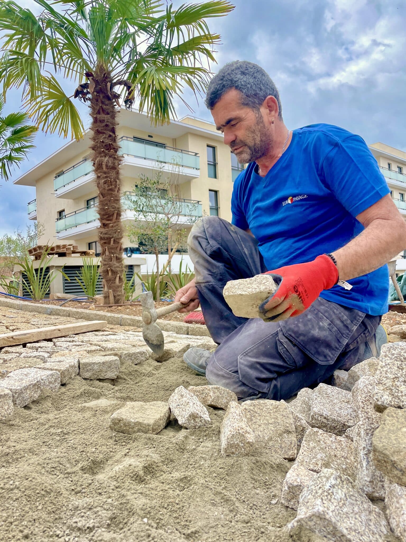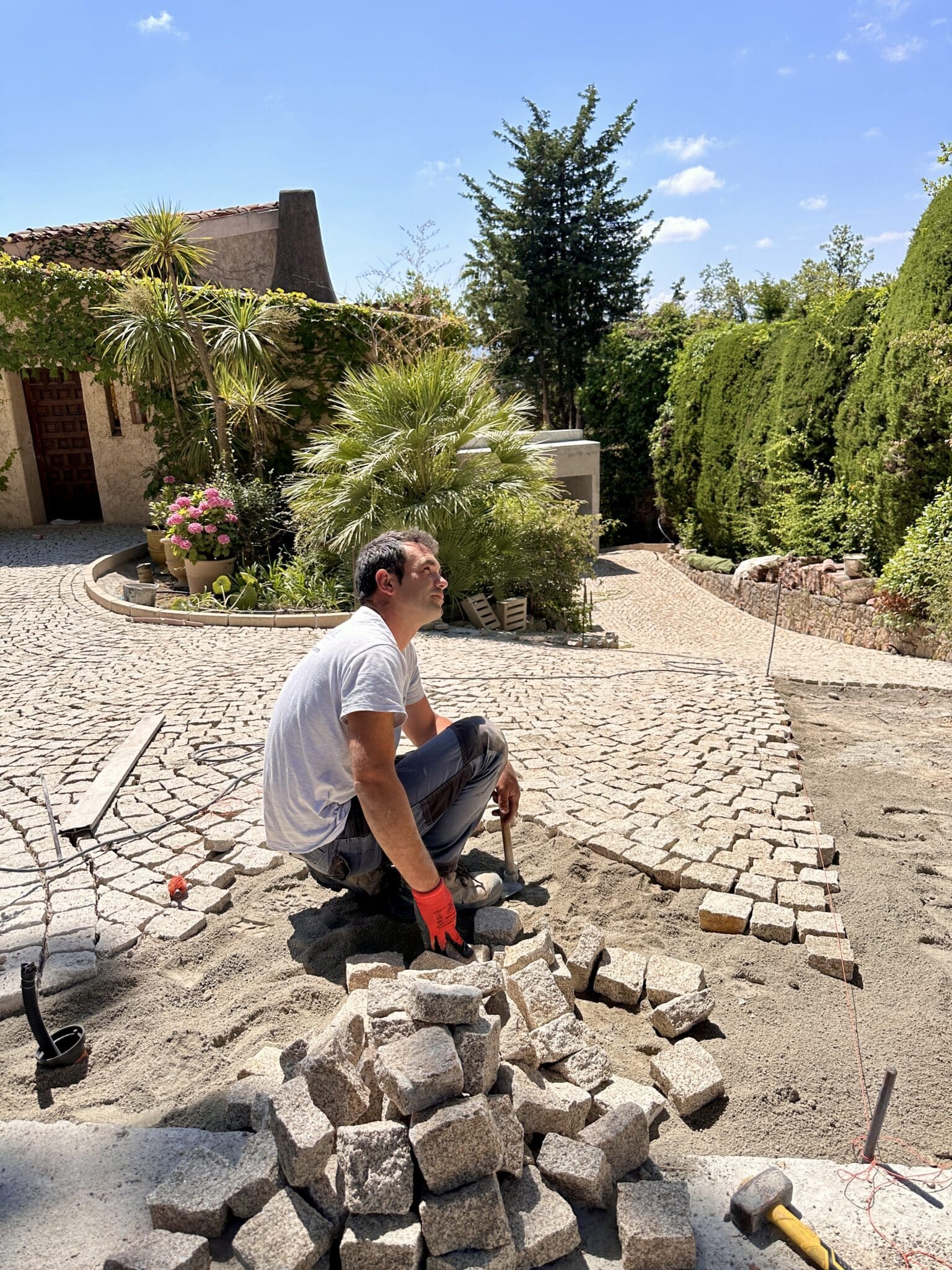 • La pose des pavés