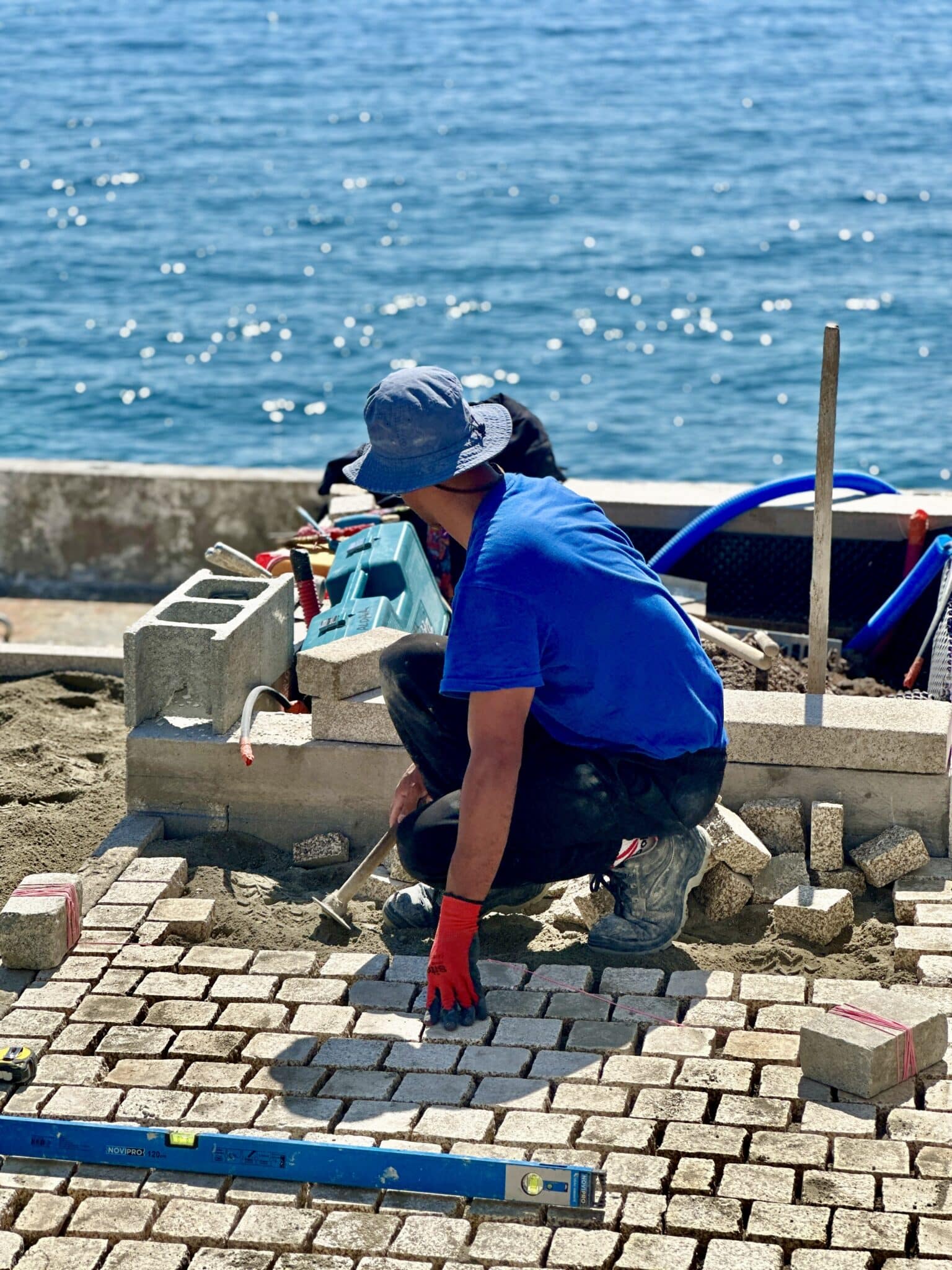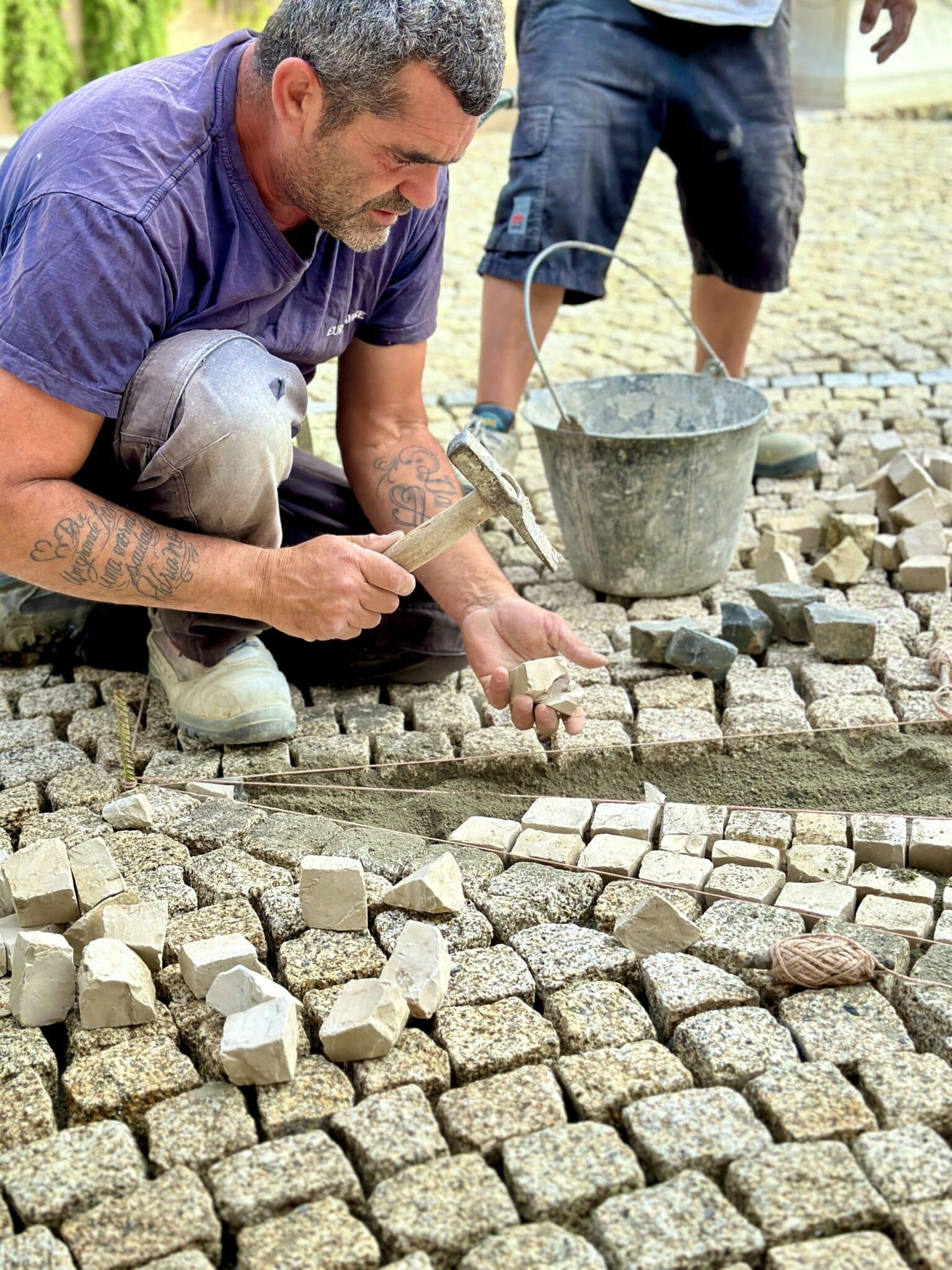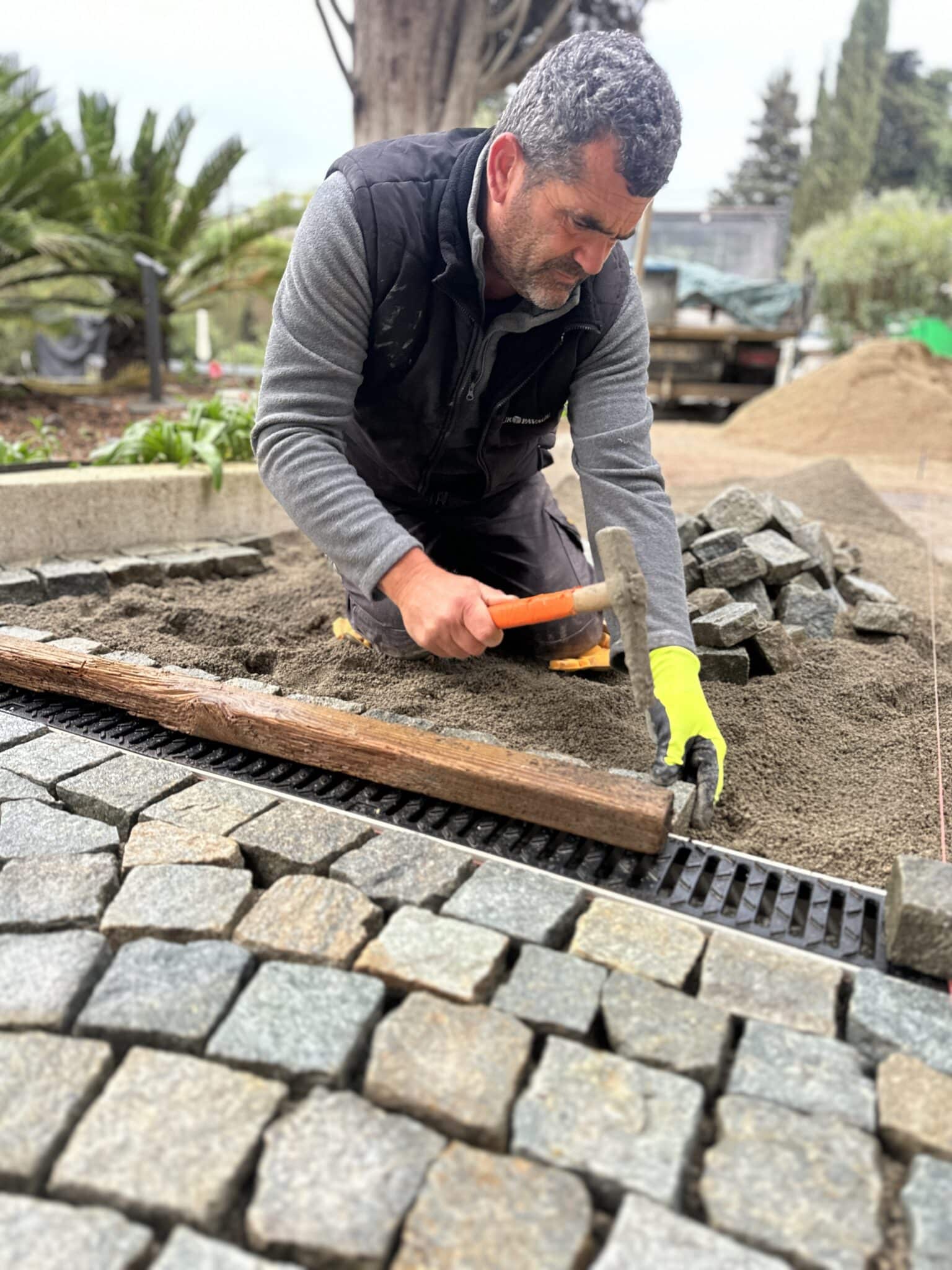 • La pose des pavés