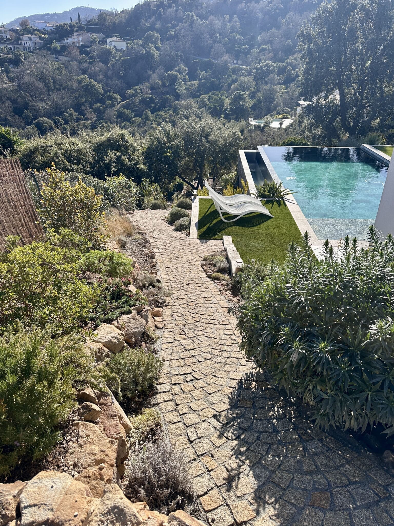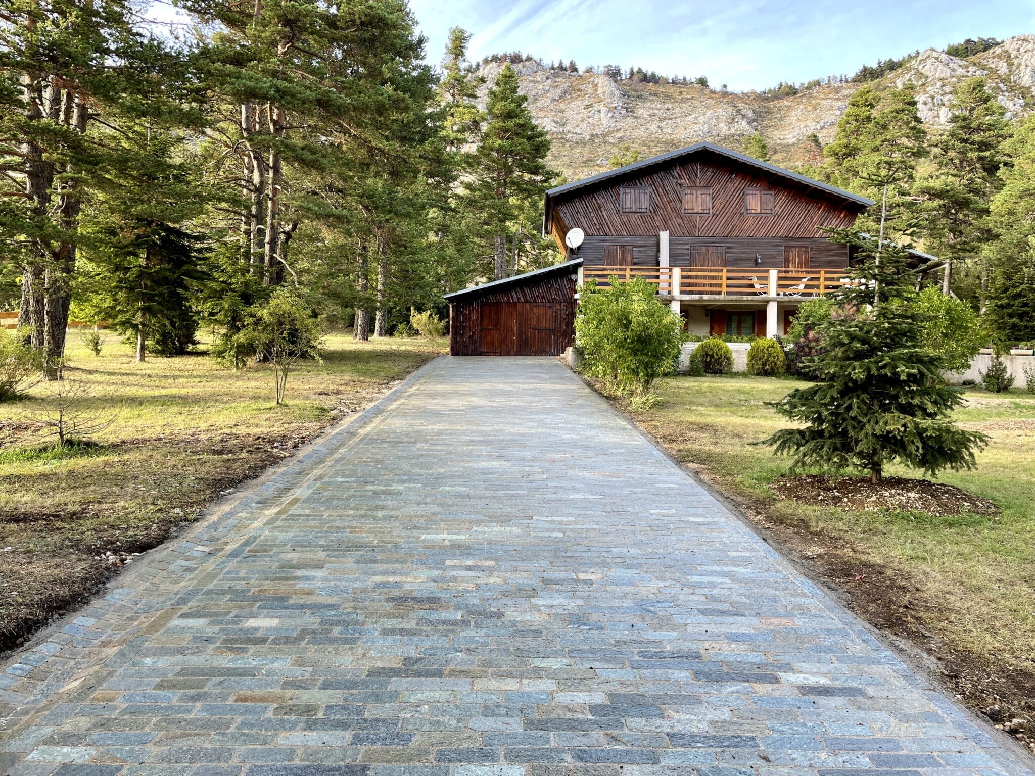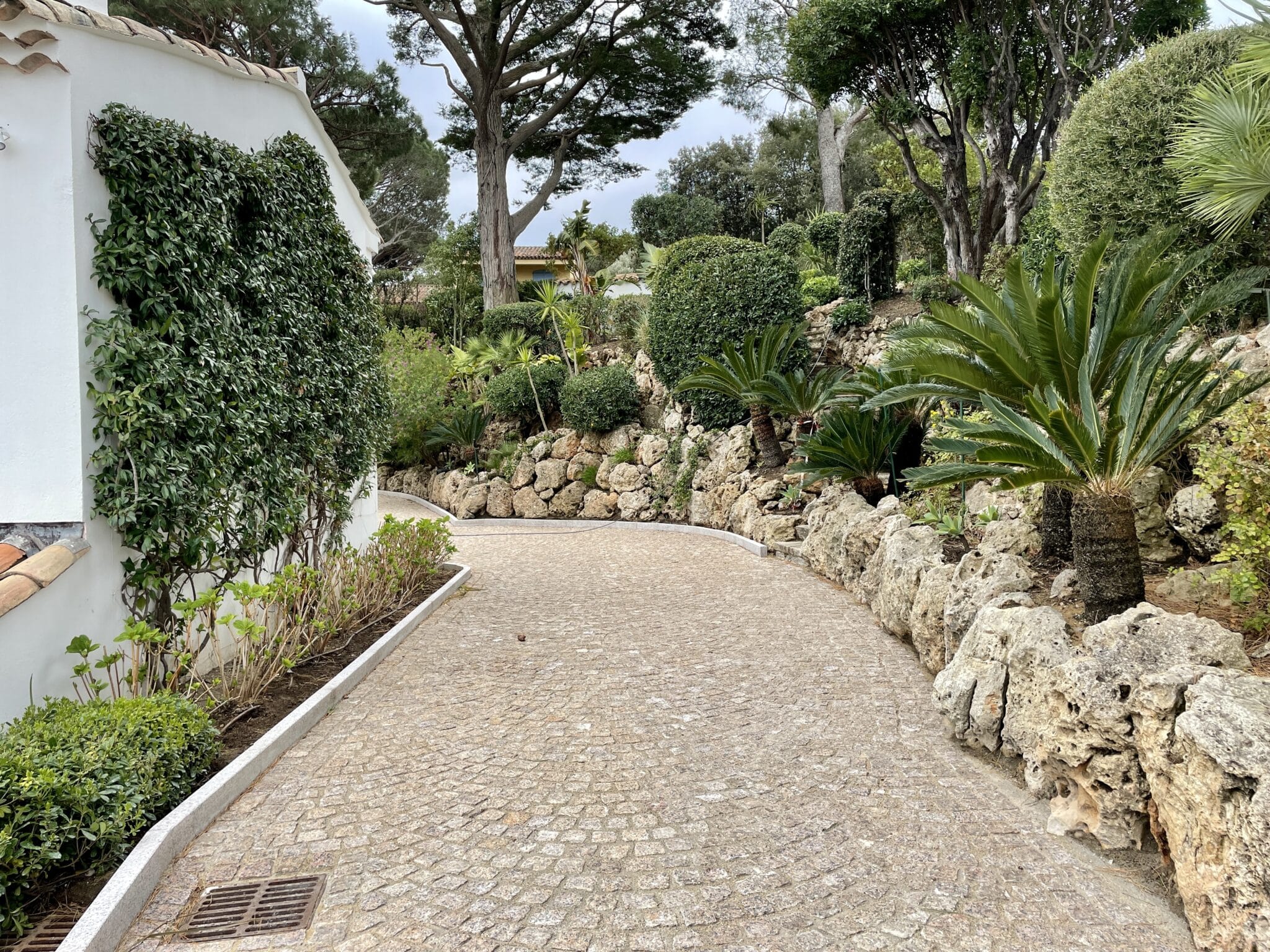 Après : une allée en pierre naturelle, chaleureuse, stable et parfaitement intégrée à son environnement